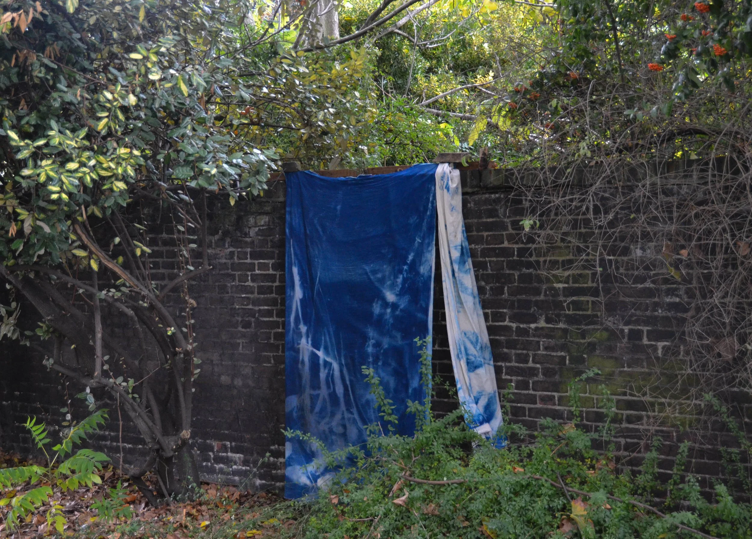 “One hundred thousand years”, posidonia oceanica, ferric ammonium citrate and potassium ferricyanide on hemp, silk and linen. Various dimensions. For ATZARO and The Ibiza Preservation Foundation. 2019.